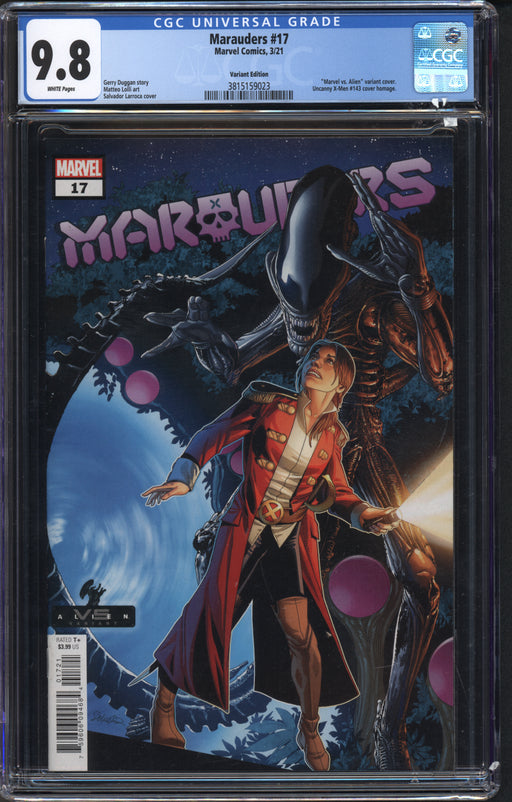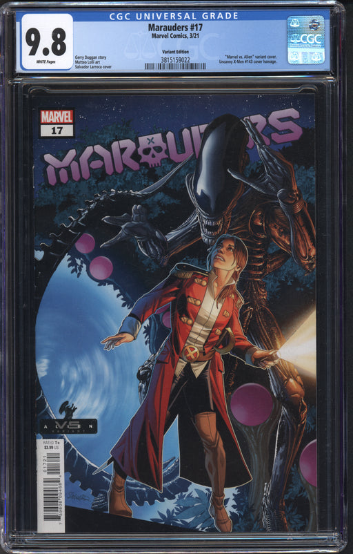 CGCMARAUDERS #17 CGC 9.8 MARVEL VS. ALIEN VARIANT CGC Cert # 3815159022 Title Marauders Issue 17 Issue Date 3/21 Issue Year 2021 Publisher...