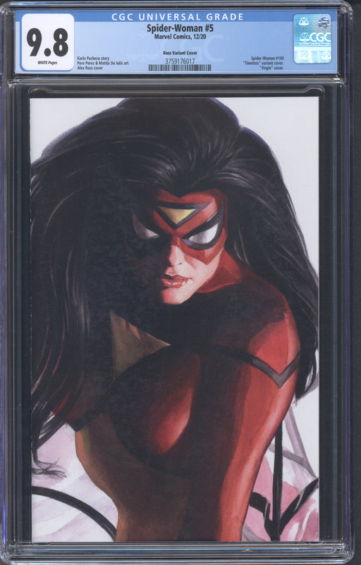 CGCSPIDER-WOMAN #5 CGC 9.8 ALEX ROSS SPIDER-WOMAN TIMELESS CGC Cert # 3759176017 Title Spider-Woman Issue 5 Issue Date 12/20 Issue Year 2...