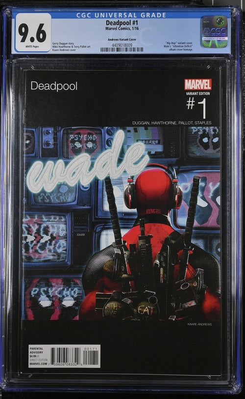 CGC SUBDeadpool, Vol. 5 #1 F Kaare Andrews Hip-Hop Variant Cover CGC Cert # 4409018009 Title Deadpool Issue 1 Issue Date 1/16 Issue Year 20...