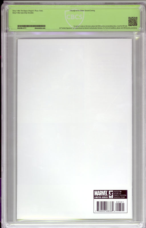 CBCS SSCBCS Cert # 21-27CBD9B-029 Siege #3 Marvel 5 2010 Variant: Quesada Retailer B&W IncentivePedigree: 9.8 AuthenticWhite Signees:Witnessed Signa...