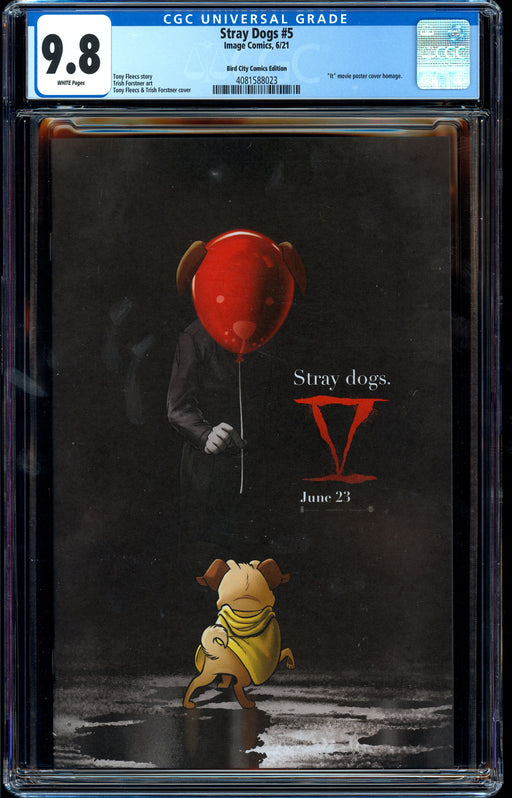 CGCSTRAY DOGS #5 CGC 9.8 "IT" MOVIE HOMAGE CGC Cert # 4081588023 Title Stray Dogs Issue 5 Issue Date 6/21 Issue Year 2021 Publishe...