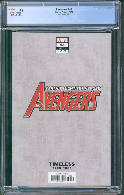 CGCAVENGERS #43 CGC 9.6 Ross Variant Cover CGC Cert # 3820917010 Title Avengers Issue 43 Issue Date 5/21 Issue Year 2021 Publisher Mar...