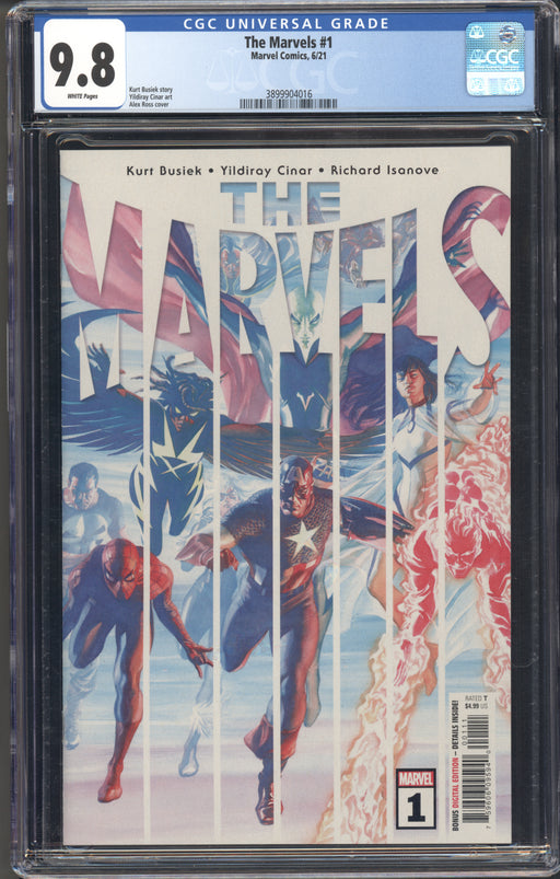 CGCTHE MARVELS #1 CGC 9.8 ALEX ROSS VARIANT CGC Cert # 3899904016 Title The Marvels Issue 1 Issue Date 6/21 Issue Year 2021 Publisher M...