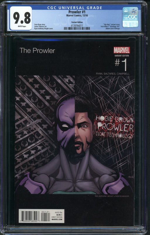 CGCPROWLER #1 CGC 9.8 VARIANT MARVEL HIP-HOP COVER CGC Cert # 4139794011 Title Prowler Issue 1 Issue Date 12/16 Issue Year 2016 Publi...