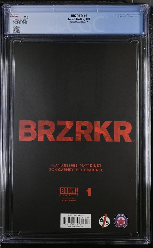 CGCCGC Cert # 4409187006 Title BRZRKR Issue 1 Issue Date 5/21 Issue Year 2021 Publisher Boom! Studios Variant Fourth Printing Grad...